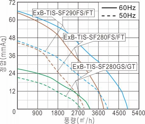 | ExB-TIS-SF280FT | 220-440V 3~, 60 | Ø250×130T | 4.4-2.8 | 4 | 1,220 | 3,810 | 65 | 637 | 1,734 | 1.1 |