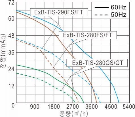 | ExB-TIS-280FS | 220V ~, 60 | Ø250×130T | 6.3 | 4 | 1,280 | 3,810 | 65 | 637 | 1,740 | 1.5 |