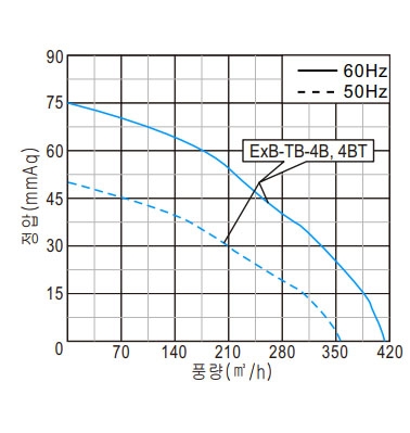 | ExB-TB-4B | 220V ~, 60 | Ø150 | 0.8 | 2 | 210 | 426 | 75 | 736 | 3,400 | 0.15 |