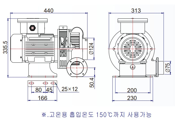 • 중간 차단팬을 채택한 고온형(흡입온도 150℃ 까지 사용가능).