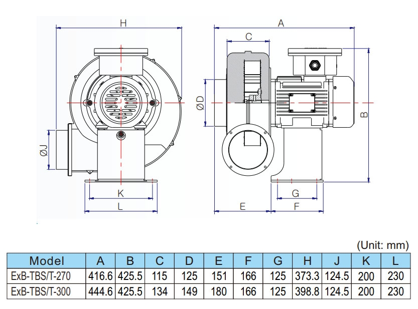 | ExB-TBS-270 | 220V ~, 60 | Ø205 |