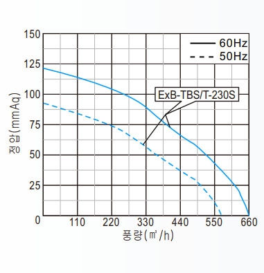 | ExB-TBS-230S | 220V ~, 60 | Ø180 | 1.6 | 2 | 335 | 660 | 120 | 1,175 | 3,434 | 0.25 |