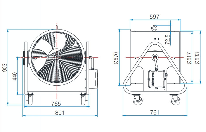 | ExP-TIP-600S-1 | 220V ~, 60 | Ø600 | 5.7 | 4 | 1,300 | 420 | 60 | 588 | 1,756 | 1.2 |