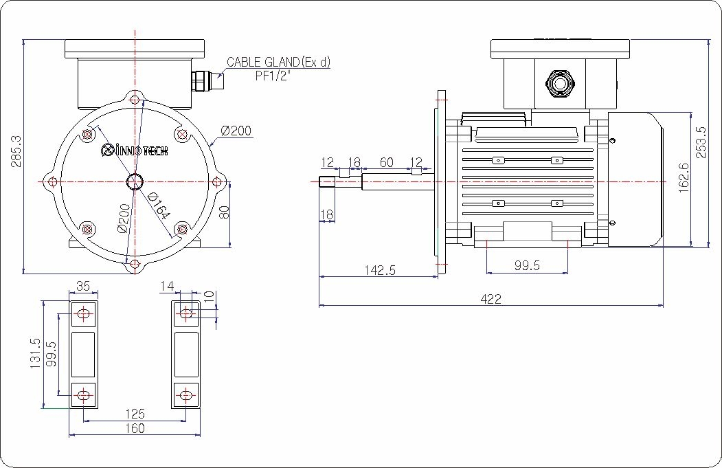 • 본 제품의 방폭등급: Ex d IIB T5(IP54), F종 프리미엄급(IE3) 삼상모타.