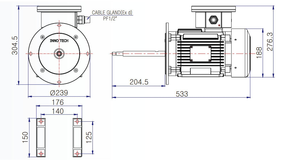 | ExM-150FT | 440V 3~ | 60 | 1.5 | 3.2 | 4 | 1,580 | DE:6204ZZ N-DE:6203ZZ |