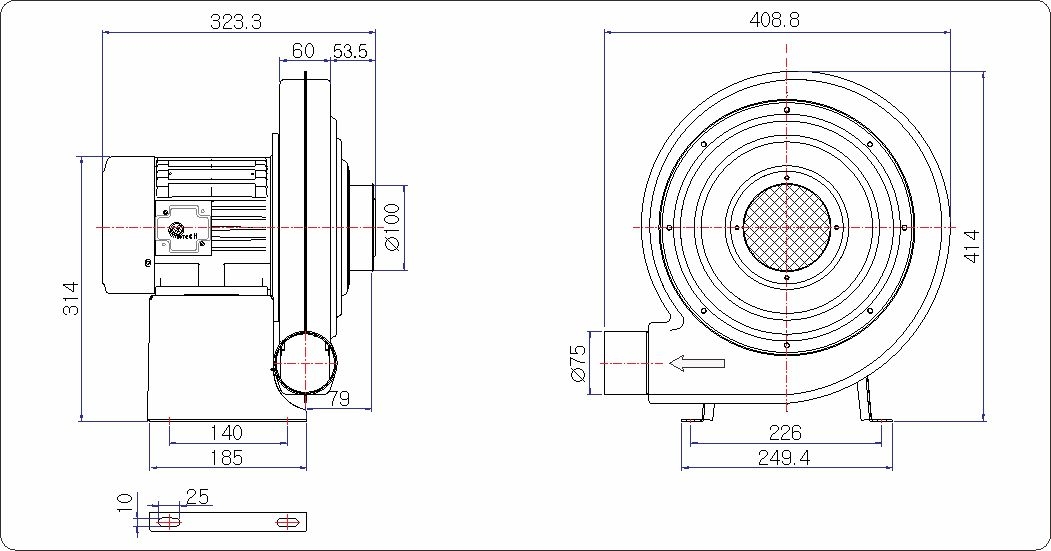 • 고풍압을 요하는 장소에 적합한 기종으로 강력한 흡입력과 토출되는 풍압이 크다.