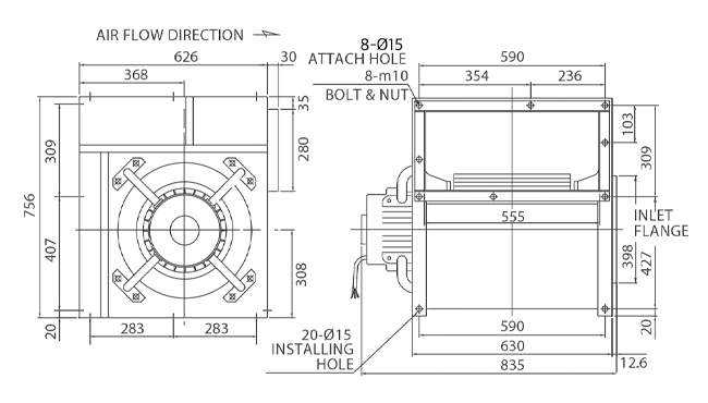 • 설치한 상태로 모터와 날개의 분리가 가능하여 점검 및 보수 용이