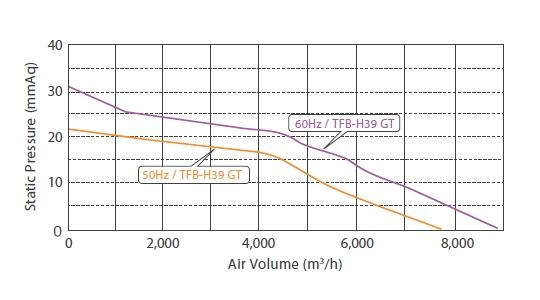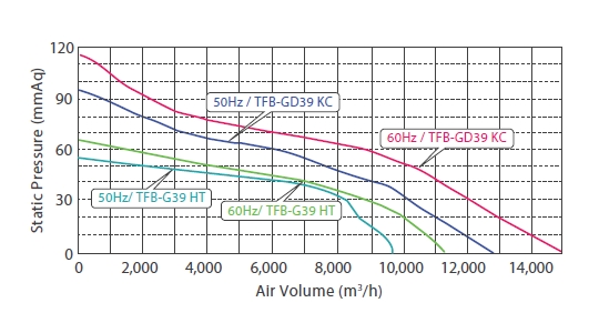 TFB-G39HT 390 6 3Ø 220/380V 50Hz 9,600 55 12.6 / 7.3 2,510 70