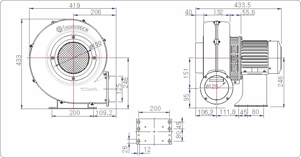 • 중간 차단팬을 채택한 고온형(흡입온도 150℃ 까지 사용가능).
