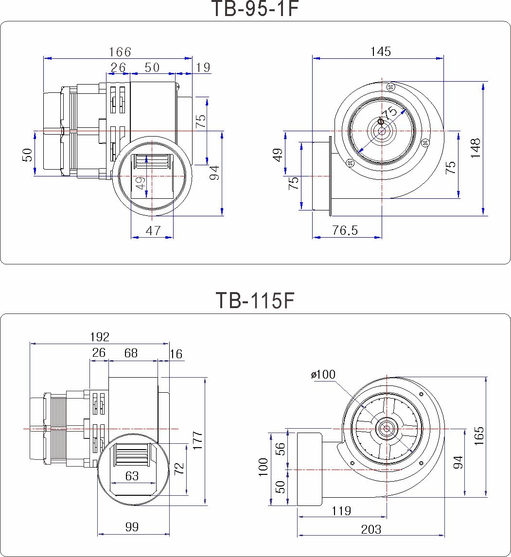 | TB-115F | 220V ~, 60 | Ø105×50T | 0.31 | 2 | 69 | 300 | 37 | 363 | 3,070 | 2.3 |