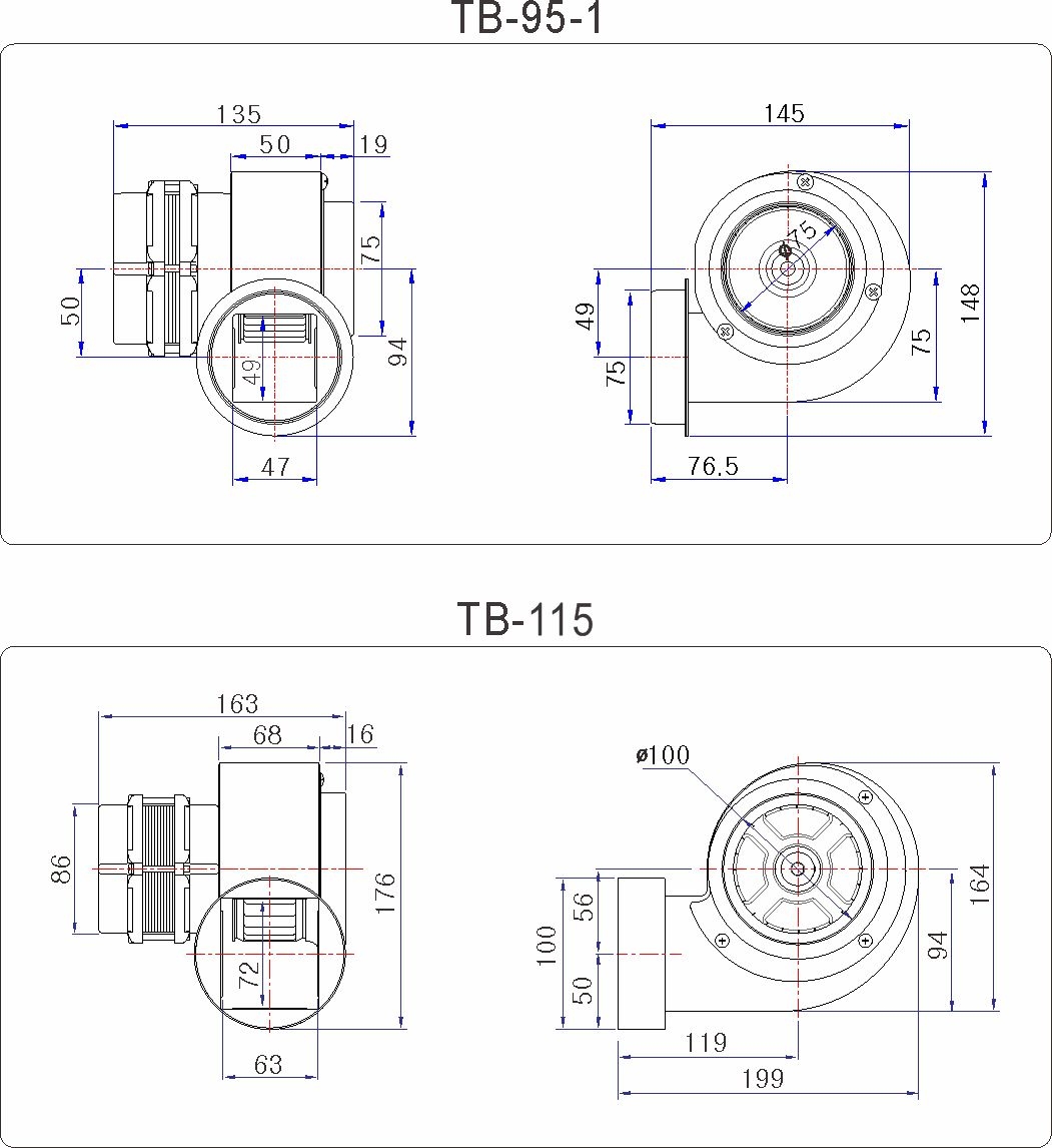 | TB-115 | 220V ~, 60 | Ø105×50T | 0.31 | 2 | 69 | 300 | 37 | 363 | 3,070 | 2.1 |