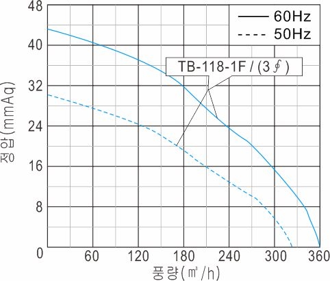 | TB-118-1F(3 ~) | 220-380V 3~, 60 | Ø118×50T | 0.41-0.22 | 2 | 106 | 360 | 43 | 421 | 3,380 | 3.8 |