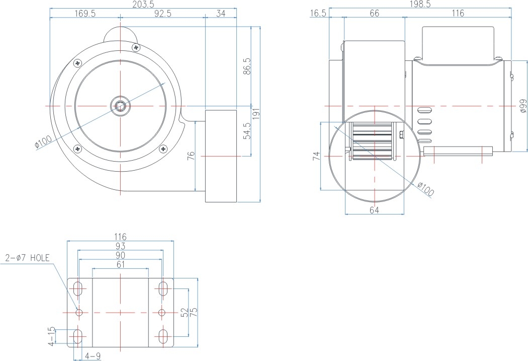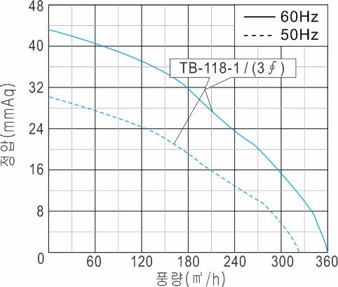 | TB-118-1(3 ~) | 220-380V 3~, 60 | Ø118×50T | 0.41-0.22 | 2 | 106 | 360 | 43 | 421 | 3,380 | 3.6 |