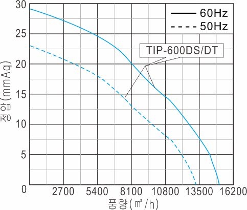 | TIP-600DS | 220V ~, 60 | Ø600 | 0.9 | 6 | 480 | 15,600 | 29 | 284 | 1,130 | 34.0 |