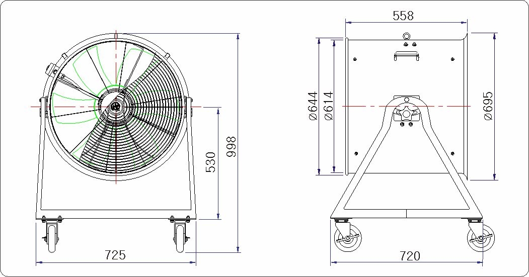 | TIP-600S-1 | 220V ~, 60 | Ø600 | 6.0 | 4 | 1,350 | 25,210 | 60 | 588 | 1,620 | 64.0 |