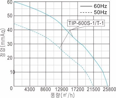 | TIP-600T-1 | 220-380V 3~, 60 | Ø600 | 4.0-2.2 | 4 | 1,220 | 25,210 | 60 | 588 | 1,650 | 64.0 |