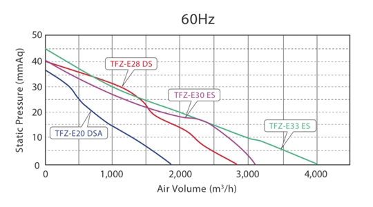 | TFZ-E33ES | 330 | 1Ø 220V 60Hz | 2 | 4,000 | 420 | 2.1 | 30 |