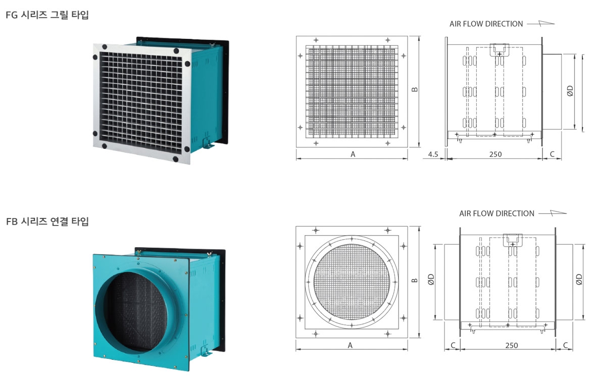 • 2가지 타입 (덕트 중간 / 벽면)